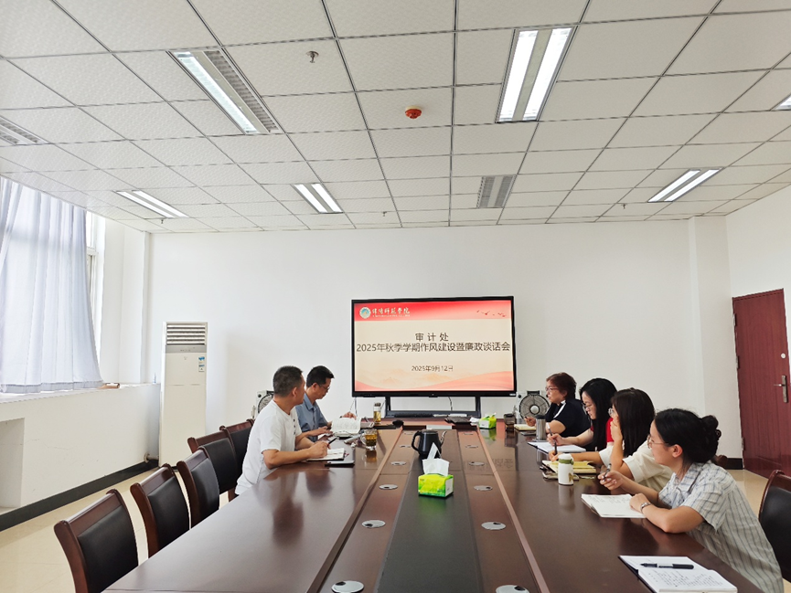 9 月 12 日下午,审计处组织召开 2025 年秋季学期作风建设暨廉政谈话会,会议由处长陈力主持,审计处全体工作人员参加。