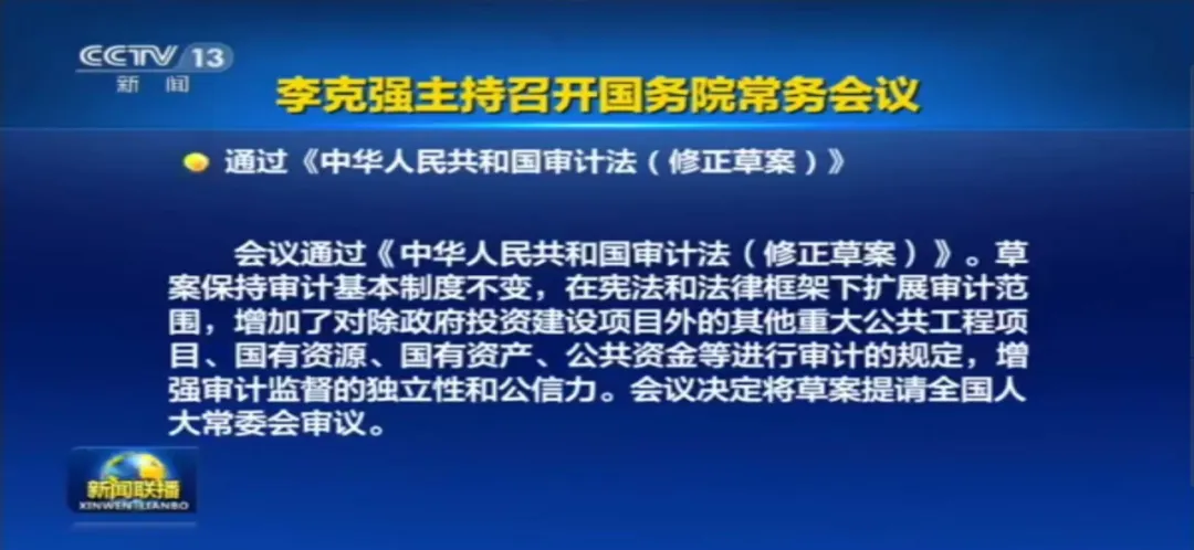 2021年5月6日,国务院总理李克强主持召开国务院常务会议,通过了《中华人民共和国审计法(修正草案)》。